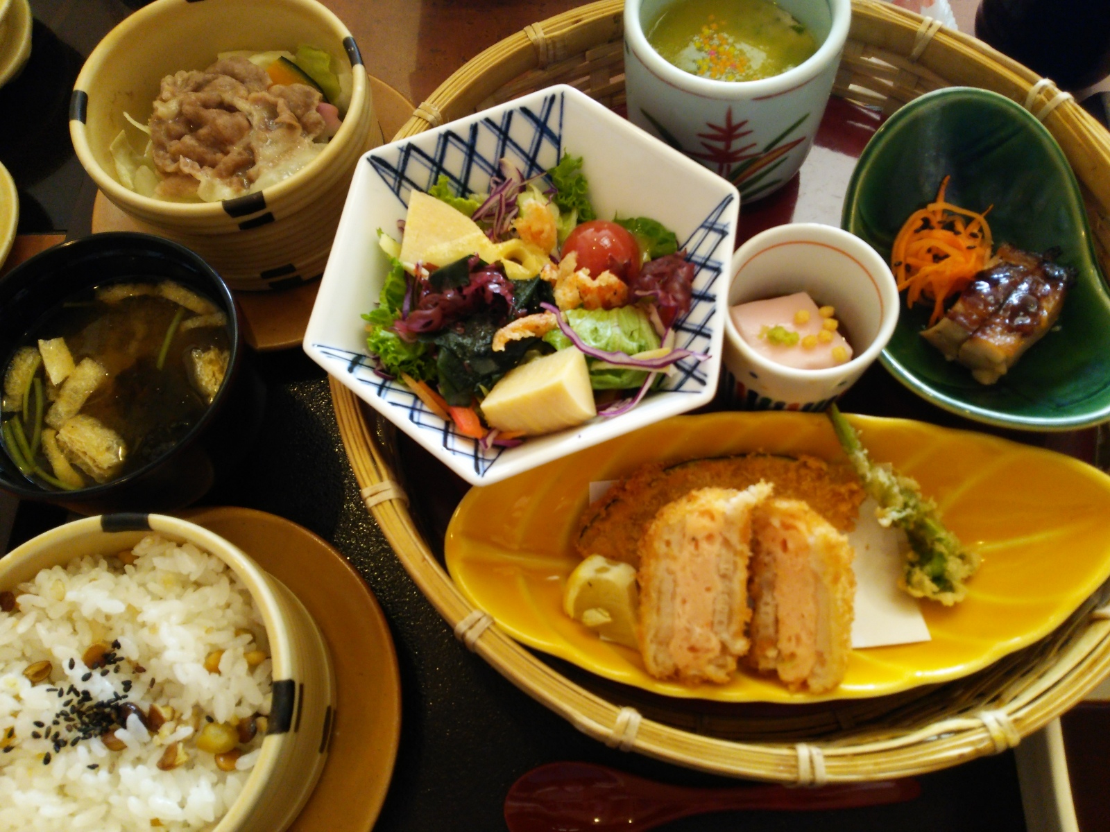 (八寸、サラダ、焼物、揚物、うすいあんかけ茶碗蒸し)