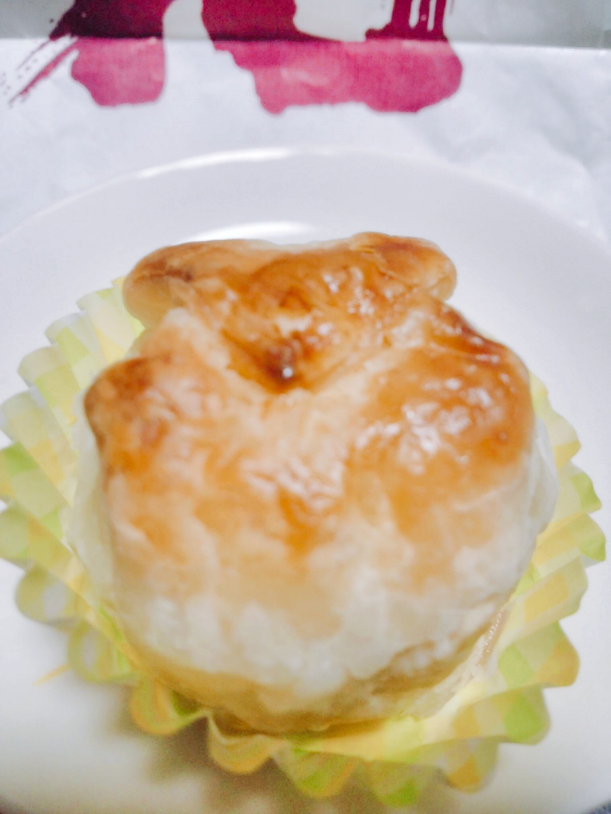 パイ生地の中はお餅にくるまった餡の洋風和菓子。